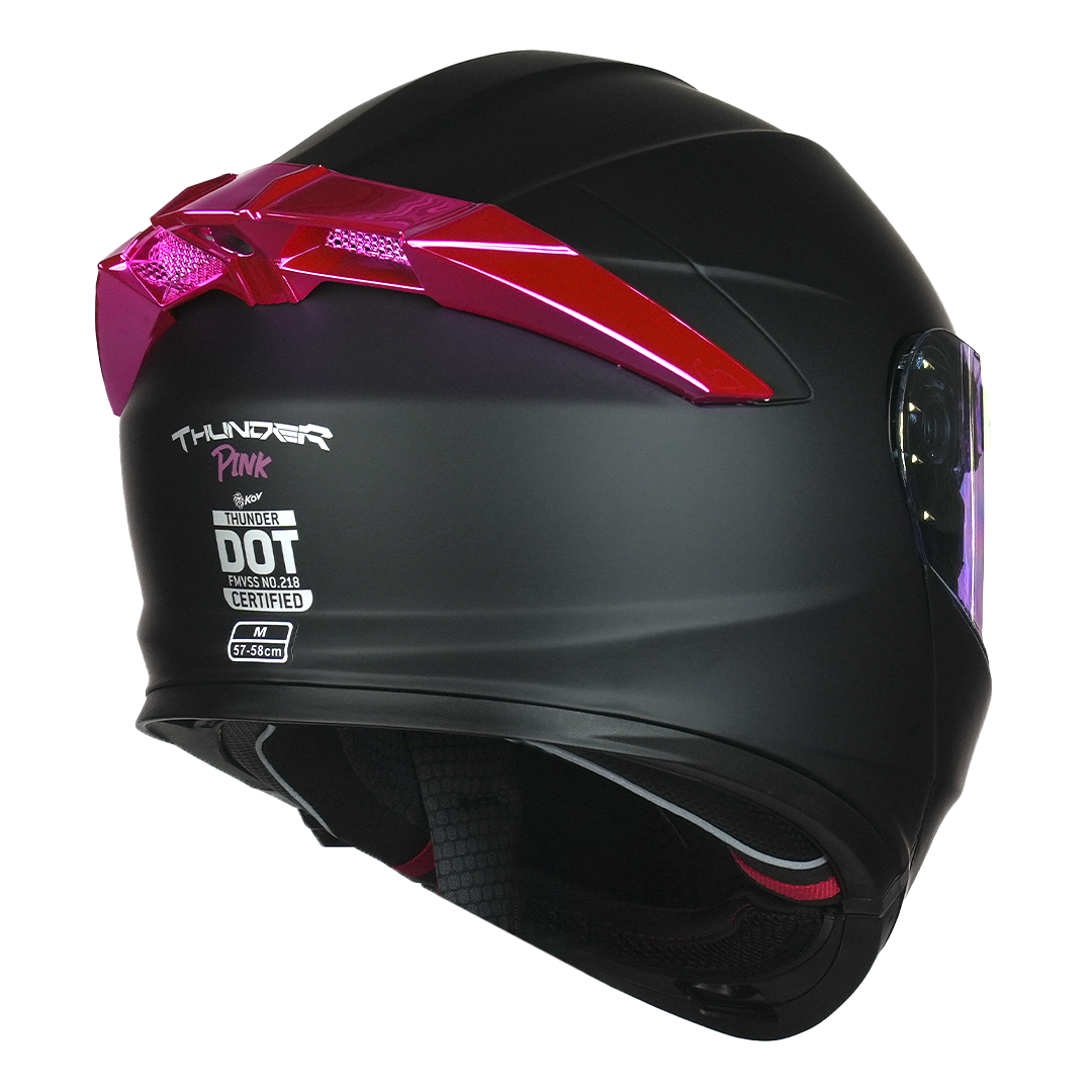 Conquista el asfalto con estilo y seguridad. Diseñado especialmente para mujeres motociclistas, el casco de motociclista Thunder Metal Pink combina protección confiable con un diseño vibrante que destaca en cada rodada.